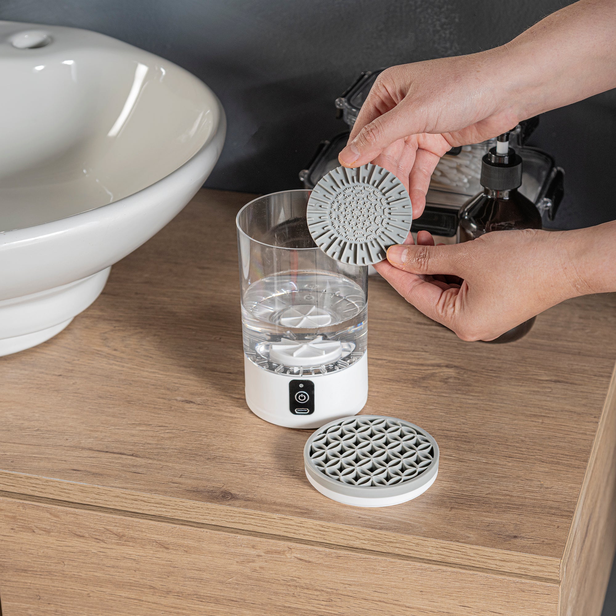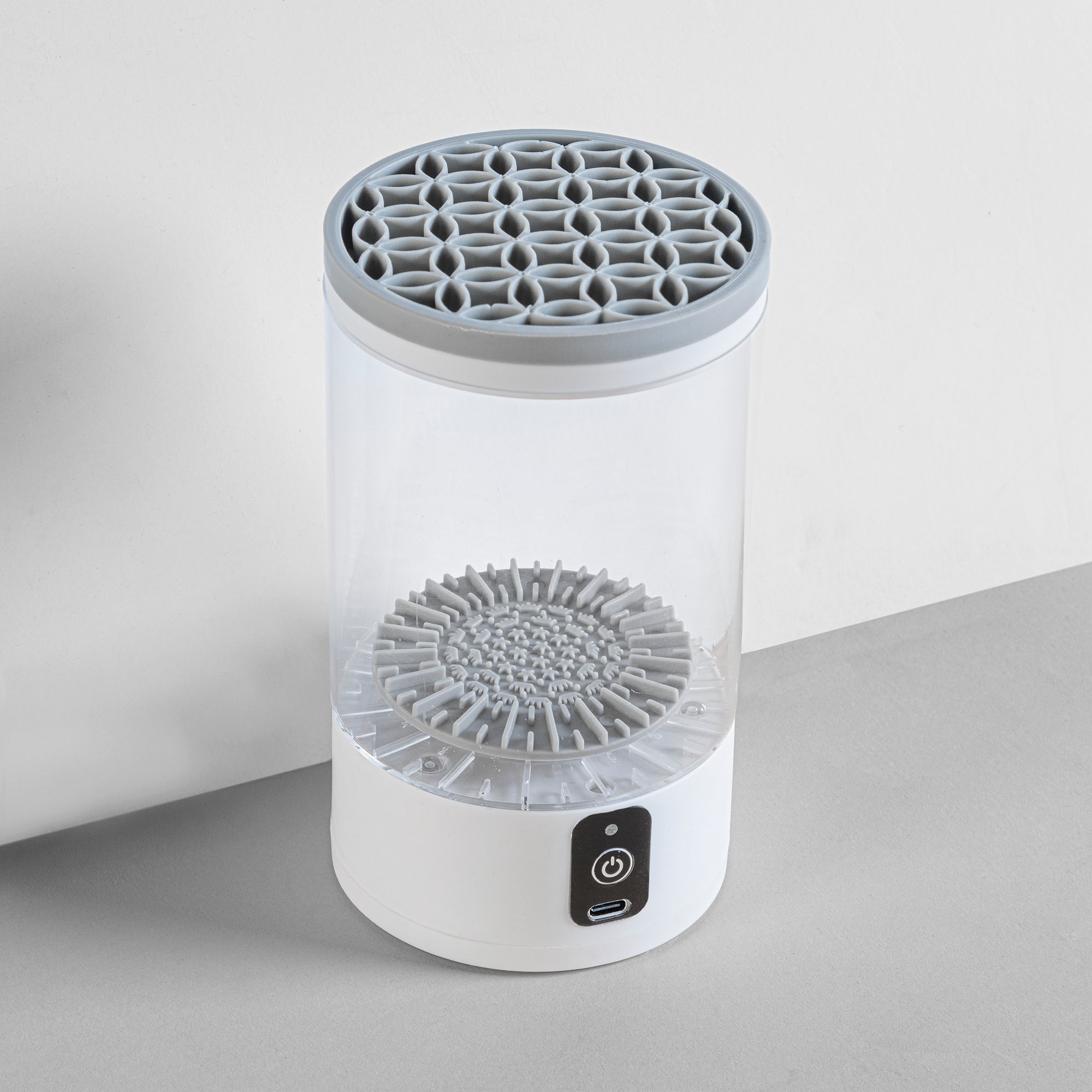 Este limpiador eléctrico de brochas elimina residuos de maquillaje en segundos. Solo agrega agua, jabón y presiona un botón. Práctico, recargable por USB y compatible con brochas de todos los tamaños. Ideal para mantener tu rutina de maquillaje limpia y profesional, sin esfuerzo.