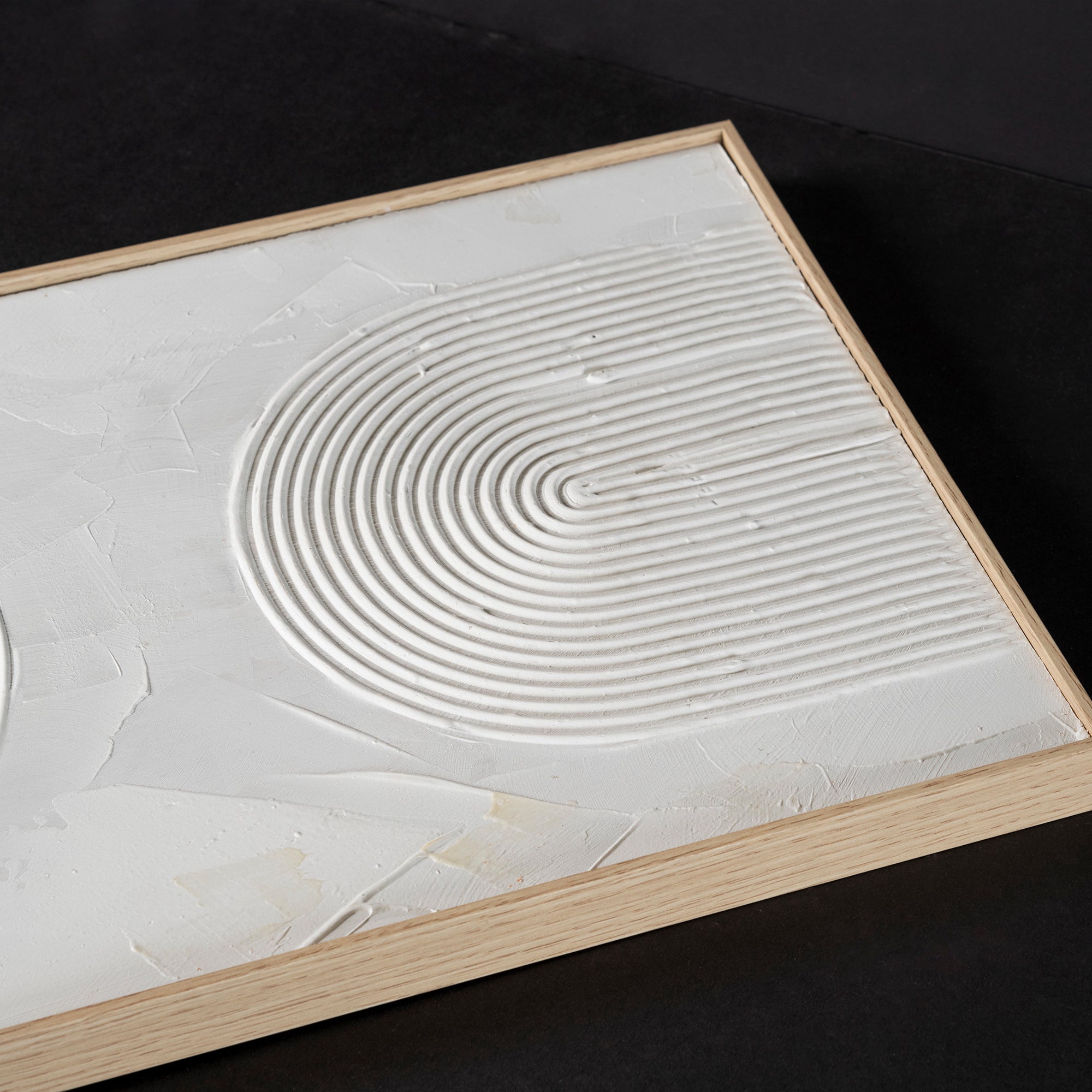 Transforma tu hogar con el Cuadro Deco sus patrones geométricos en relieve y acabado blanco en yeso ofrecen un toque sofisticado y moderno, ideal para cualquier decoración.
