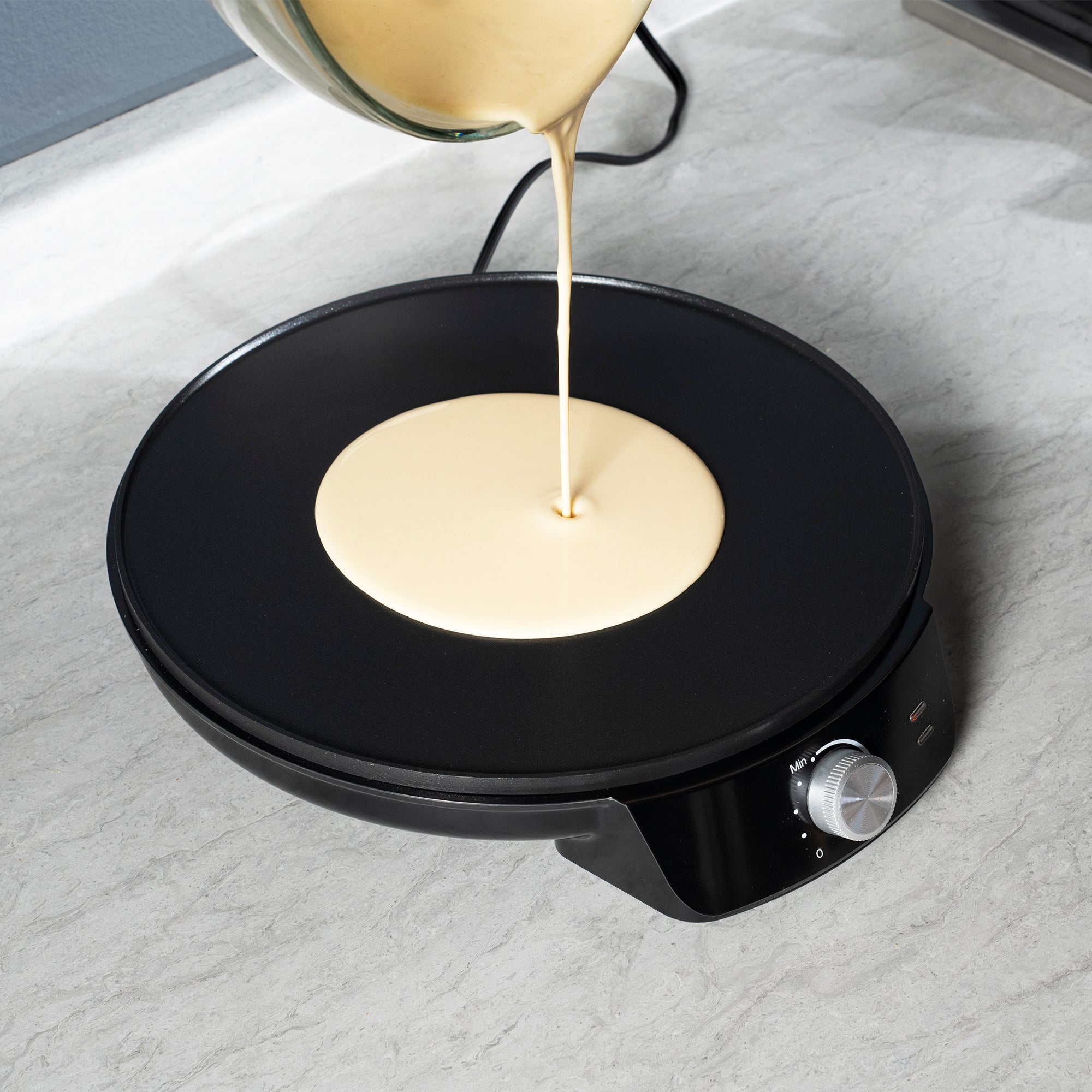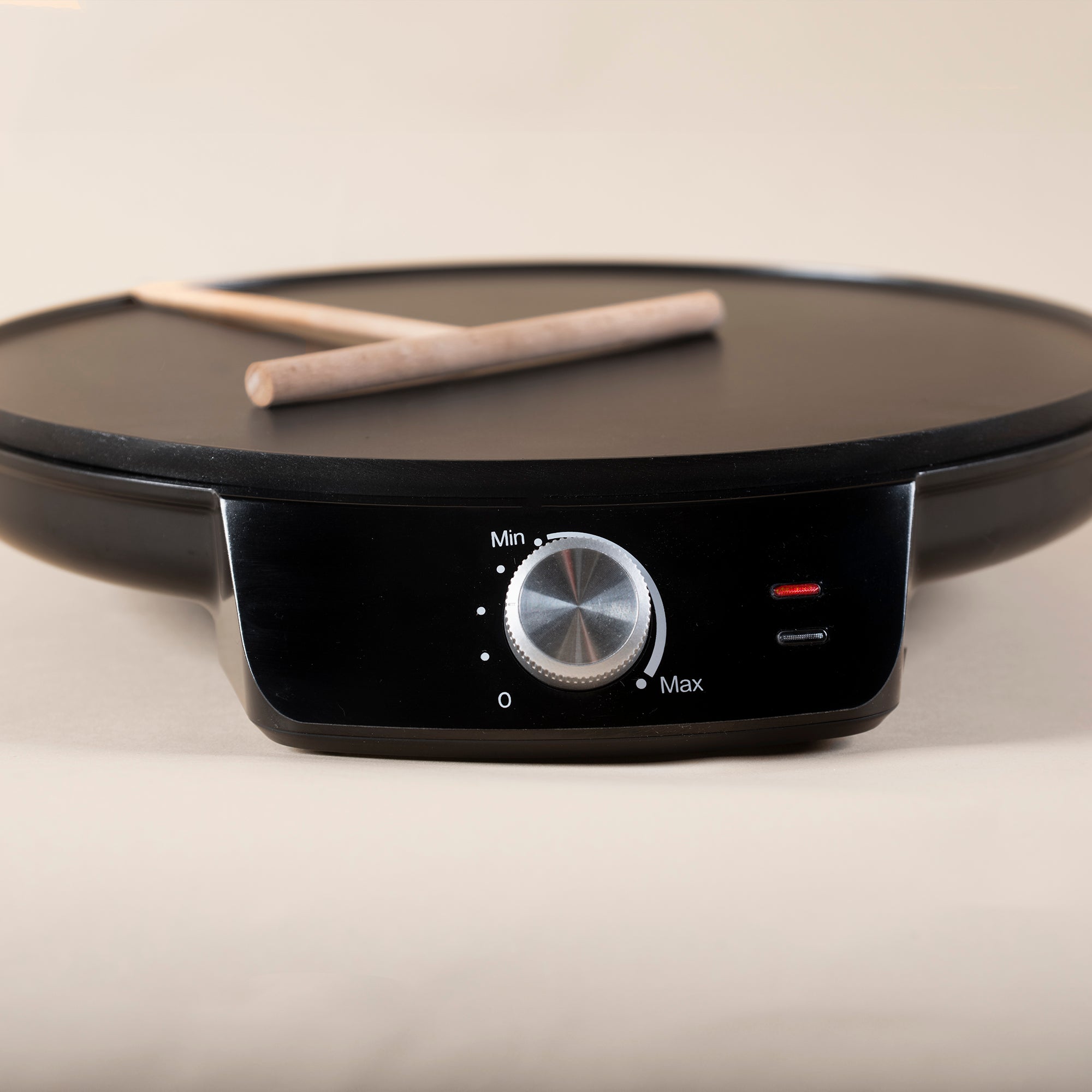 Plancha electrica de cocina, ideal para crepas y otros alimentos por su cubierta antiadherente y ajuste de temperatura.