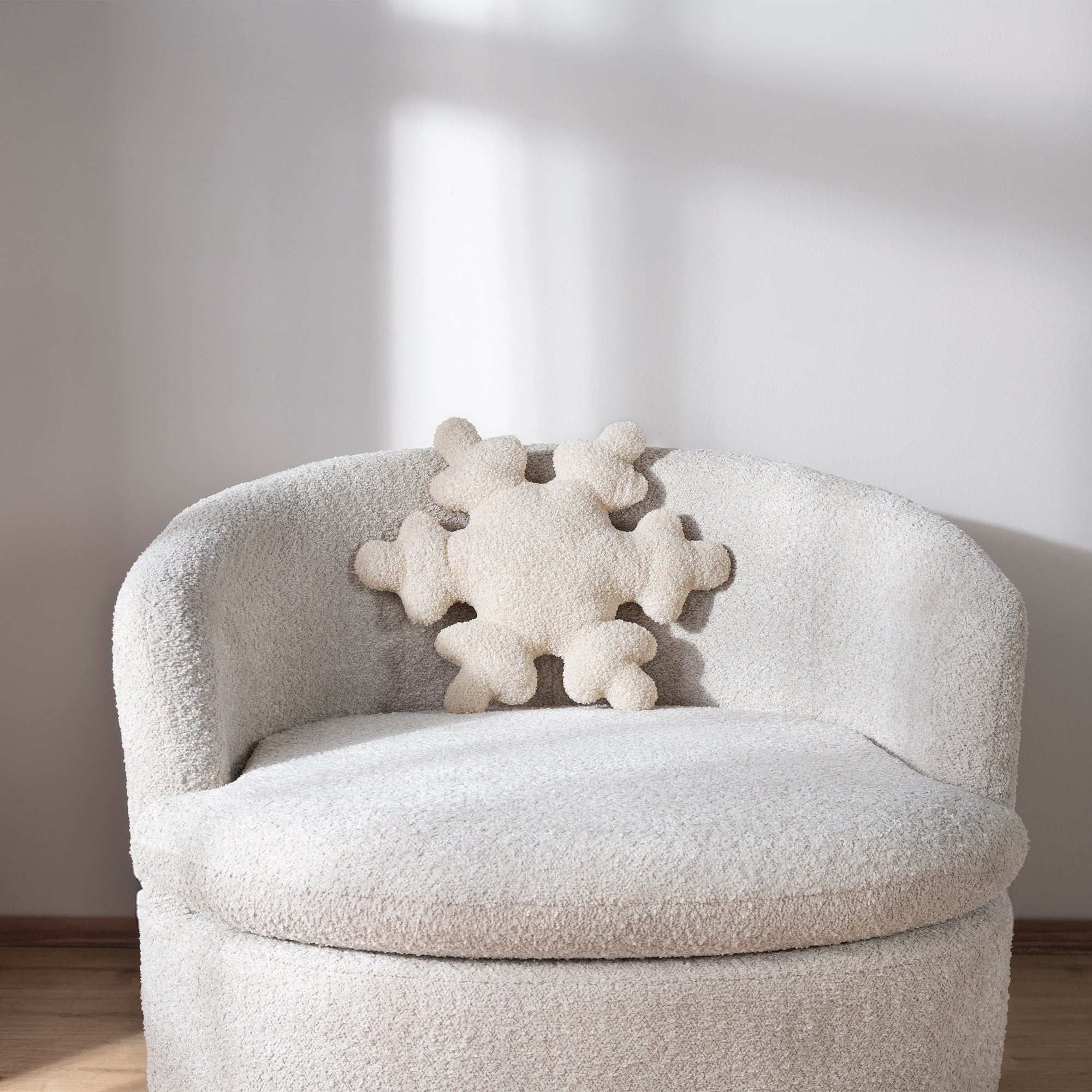 Agrega un toque invernal a tus espacio con este cojín copo, es súper suave por su textura bucle.