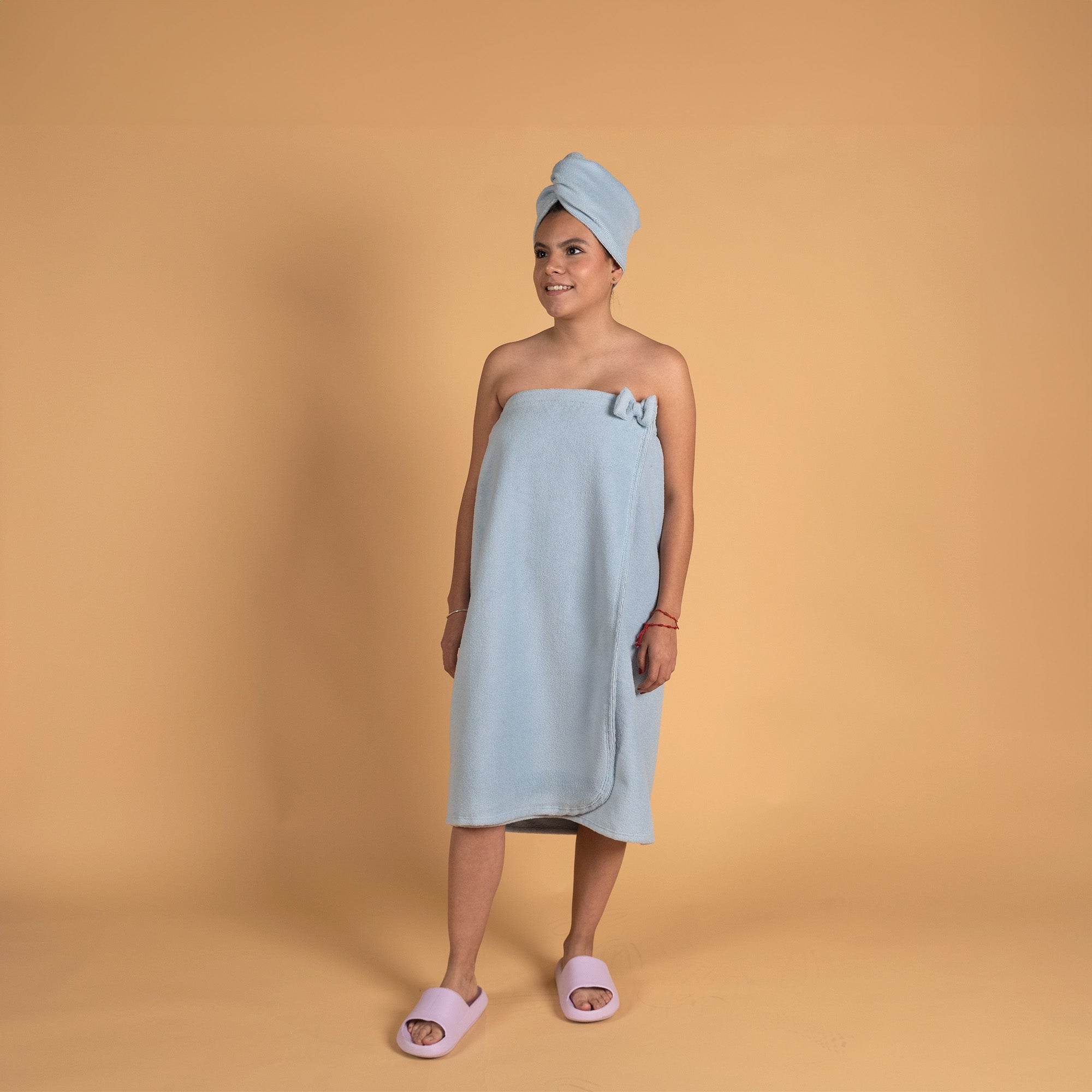 Salida de baño unitalla de microfibra muy suave y con máxima absorbencia. Muy fácil de usar. Color resistente.