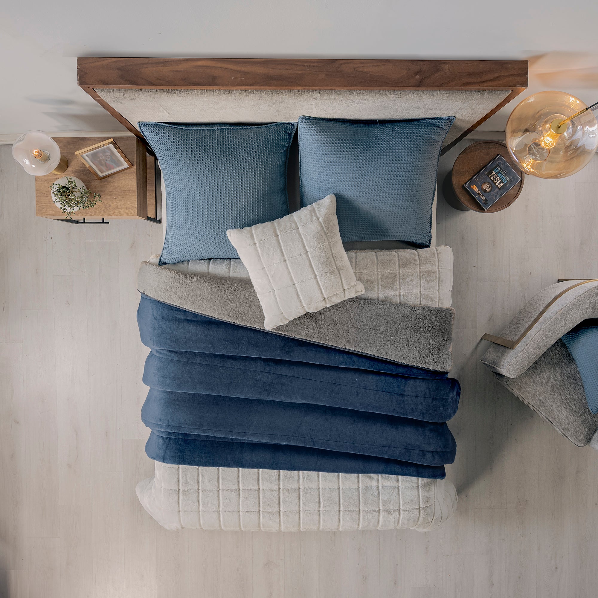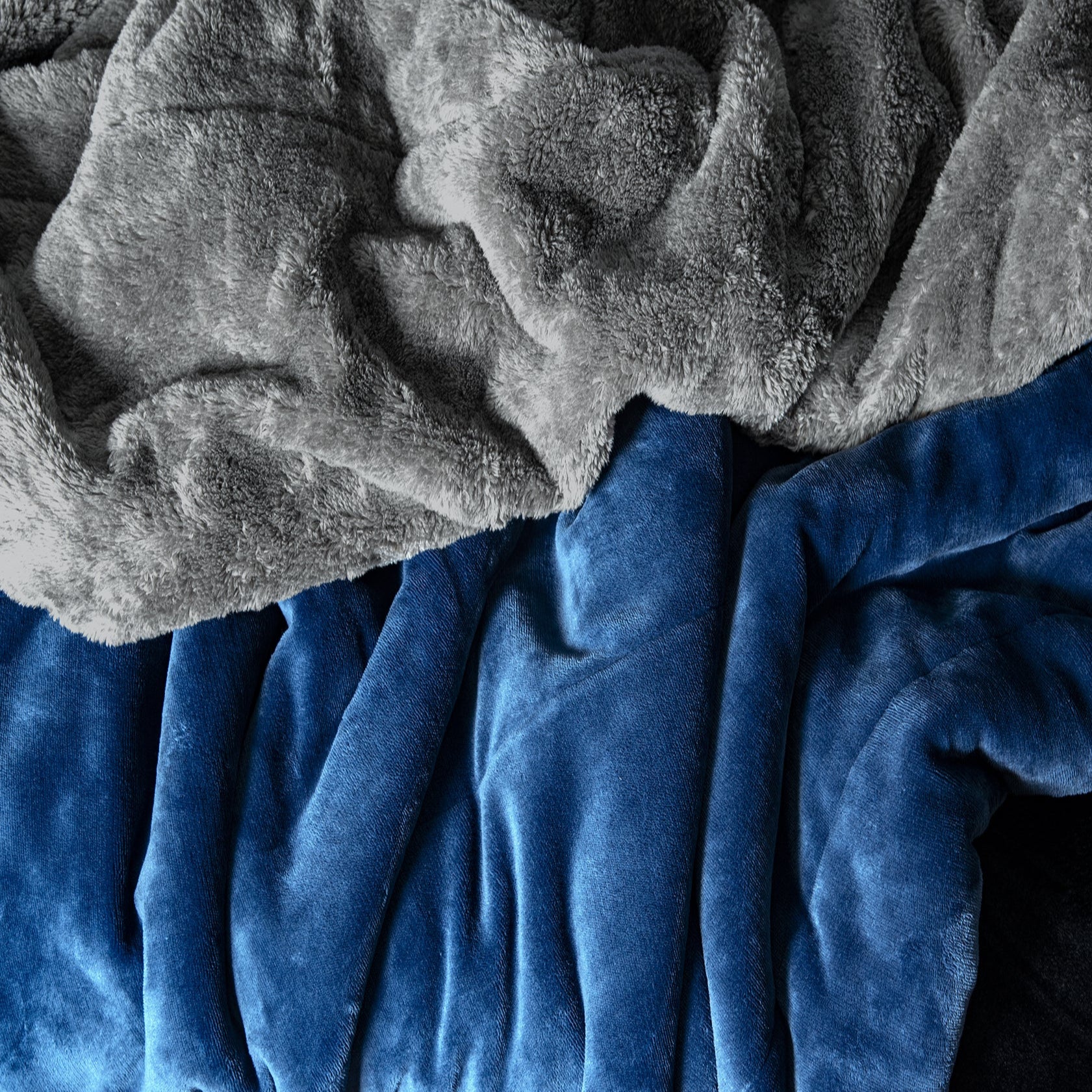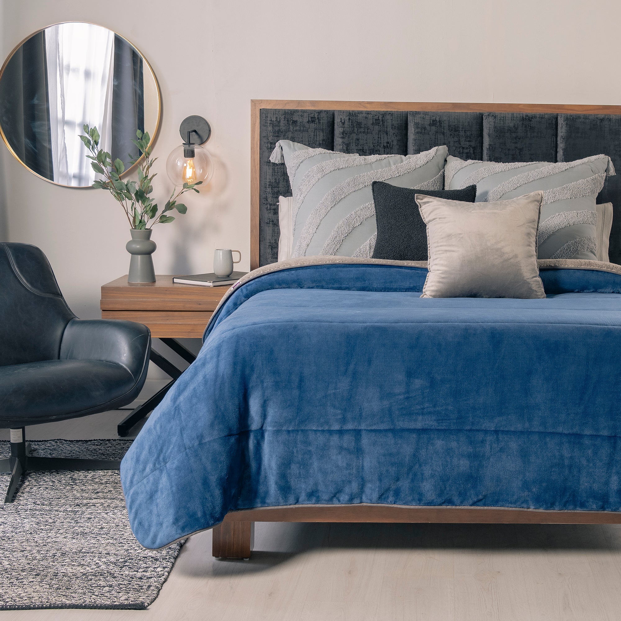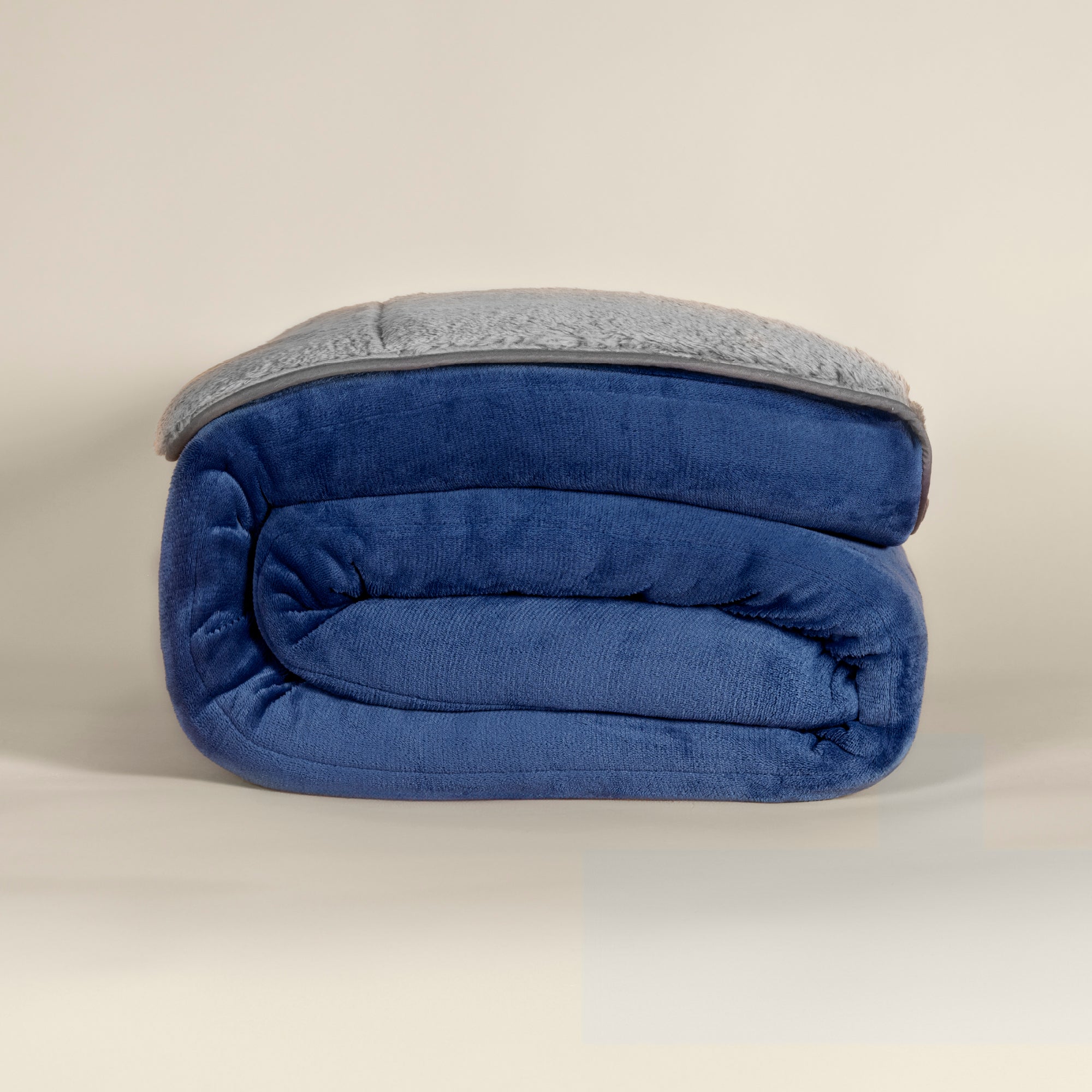 Cobertor invernal con primera vista de textura suave beauty soft y su segunda vista de borrega premium