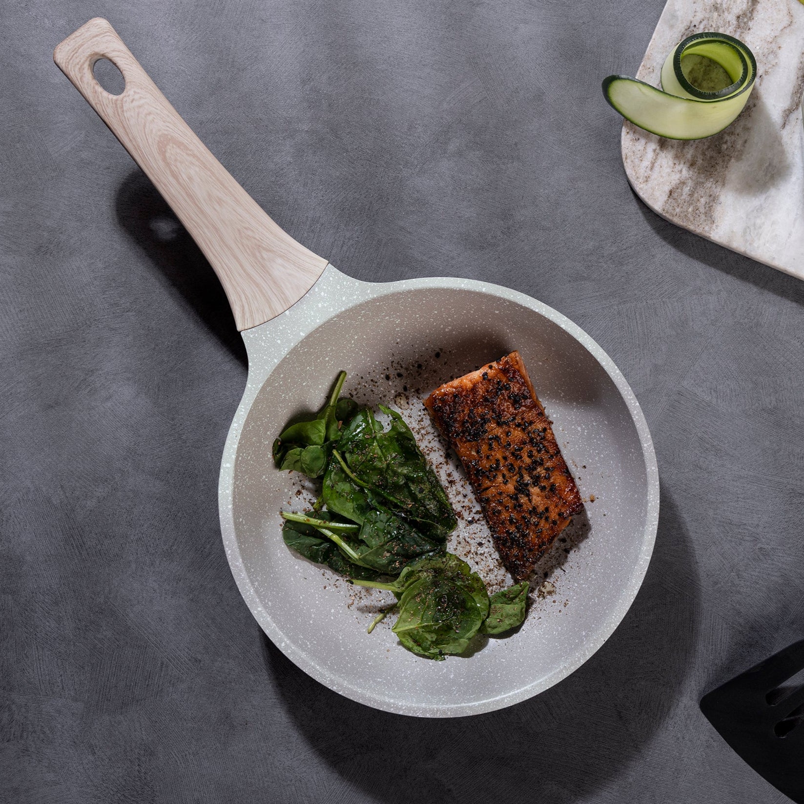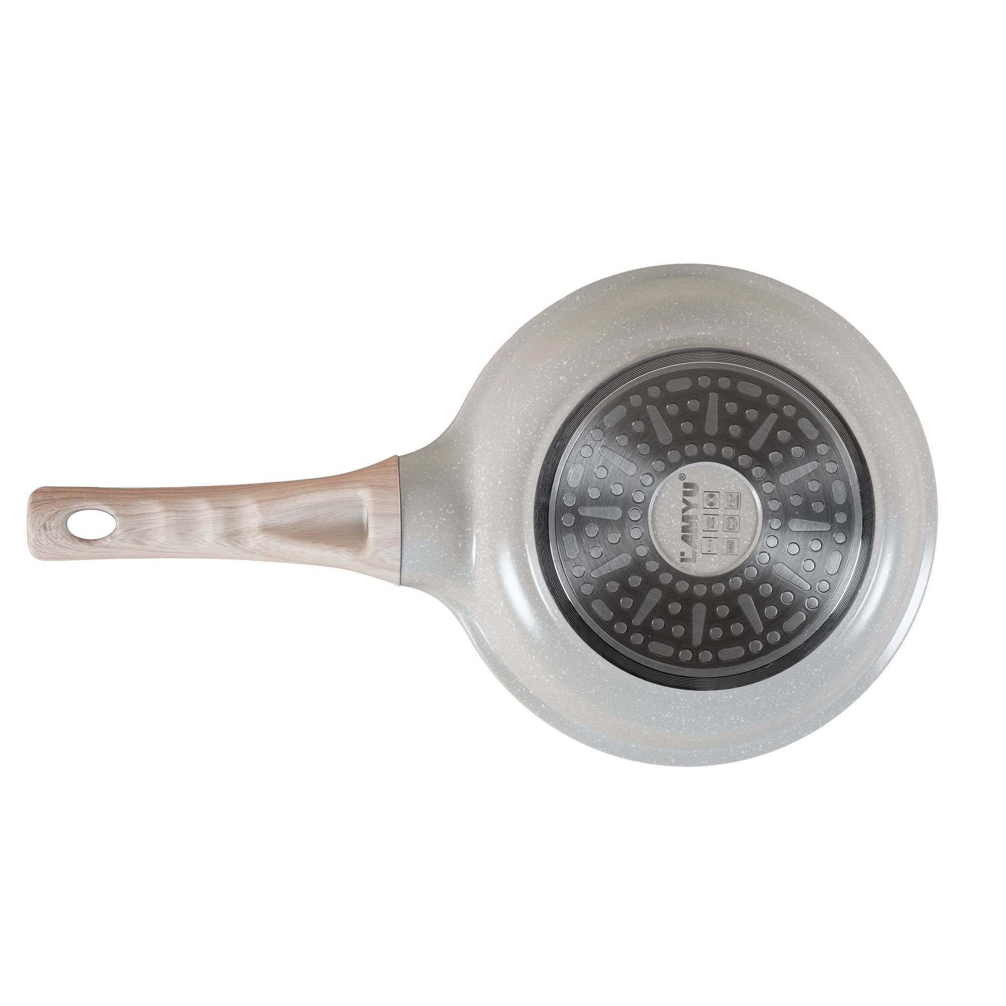 Sarten de aluminio con cubierta antiadherente, que por su material distribuye el calor de manera rápida y uniforme