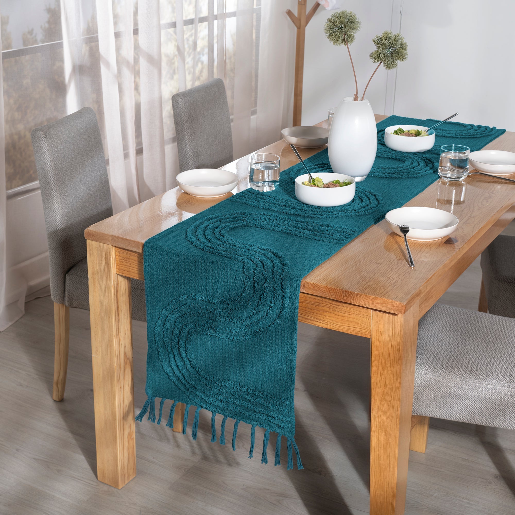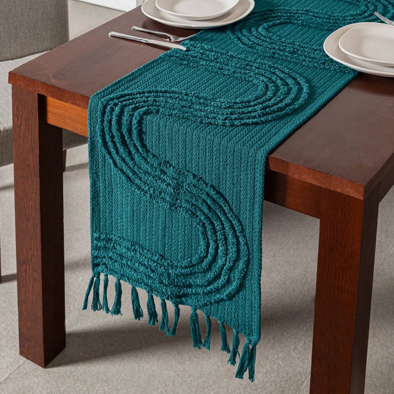 Camino de mesa con diseño tejido 100% algodón, ideal para darle un toque decorativo a tu mesa.