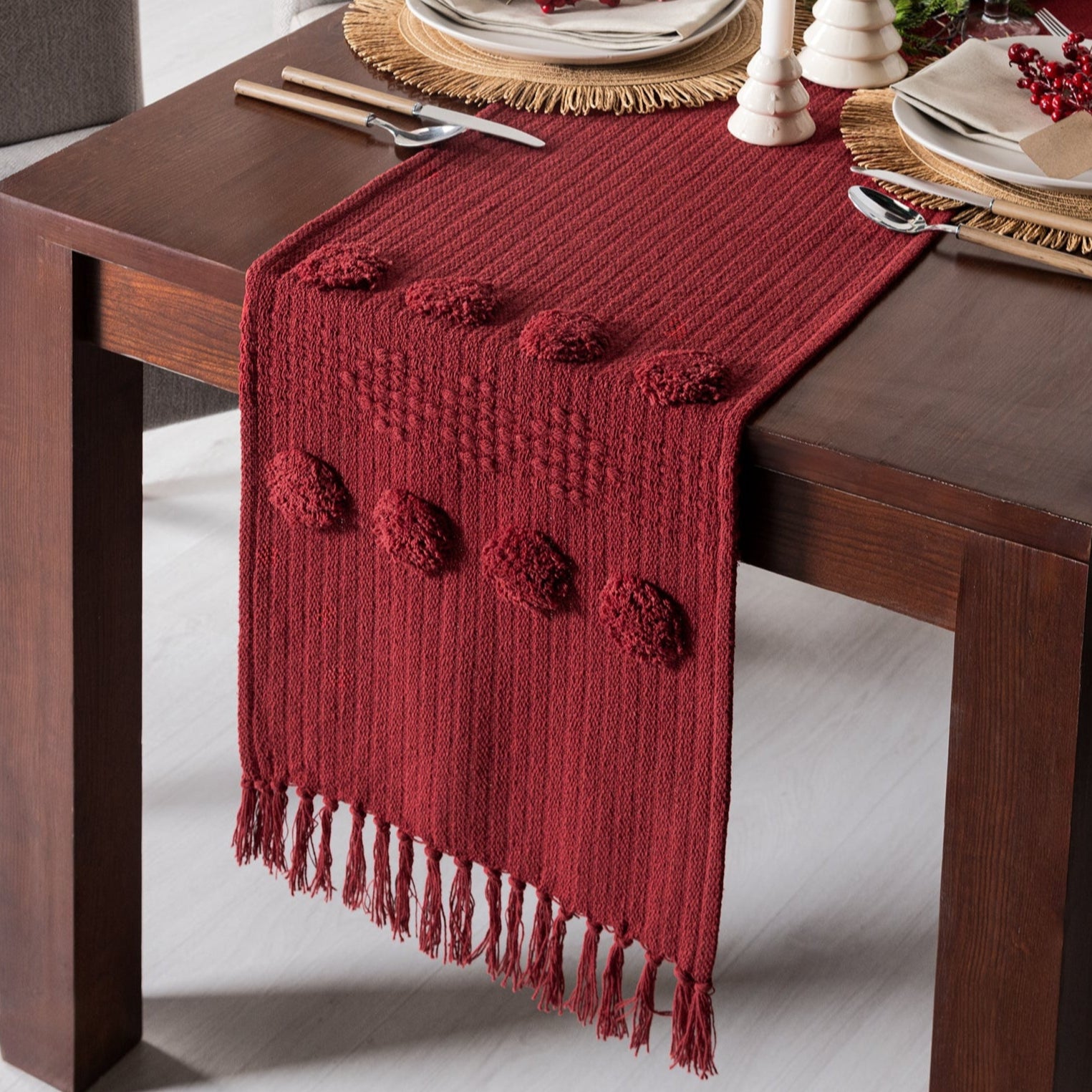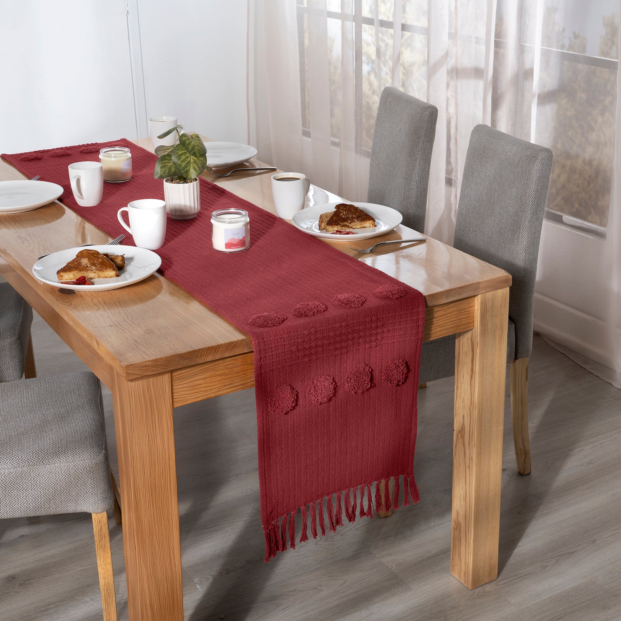 Camino de mesa con diseño tejido 100% algodón, ideal para darle un toque decorativo a tu mesa.