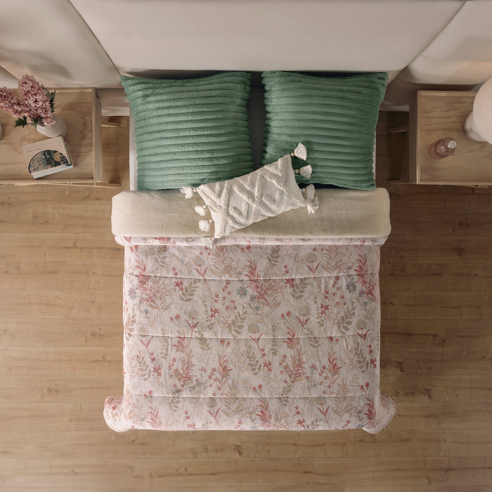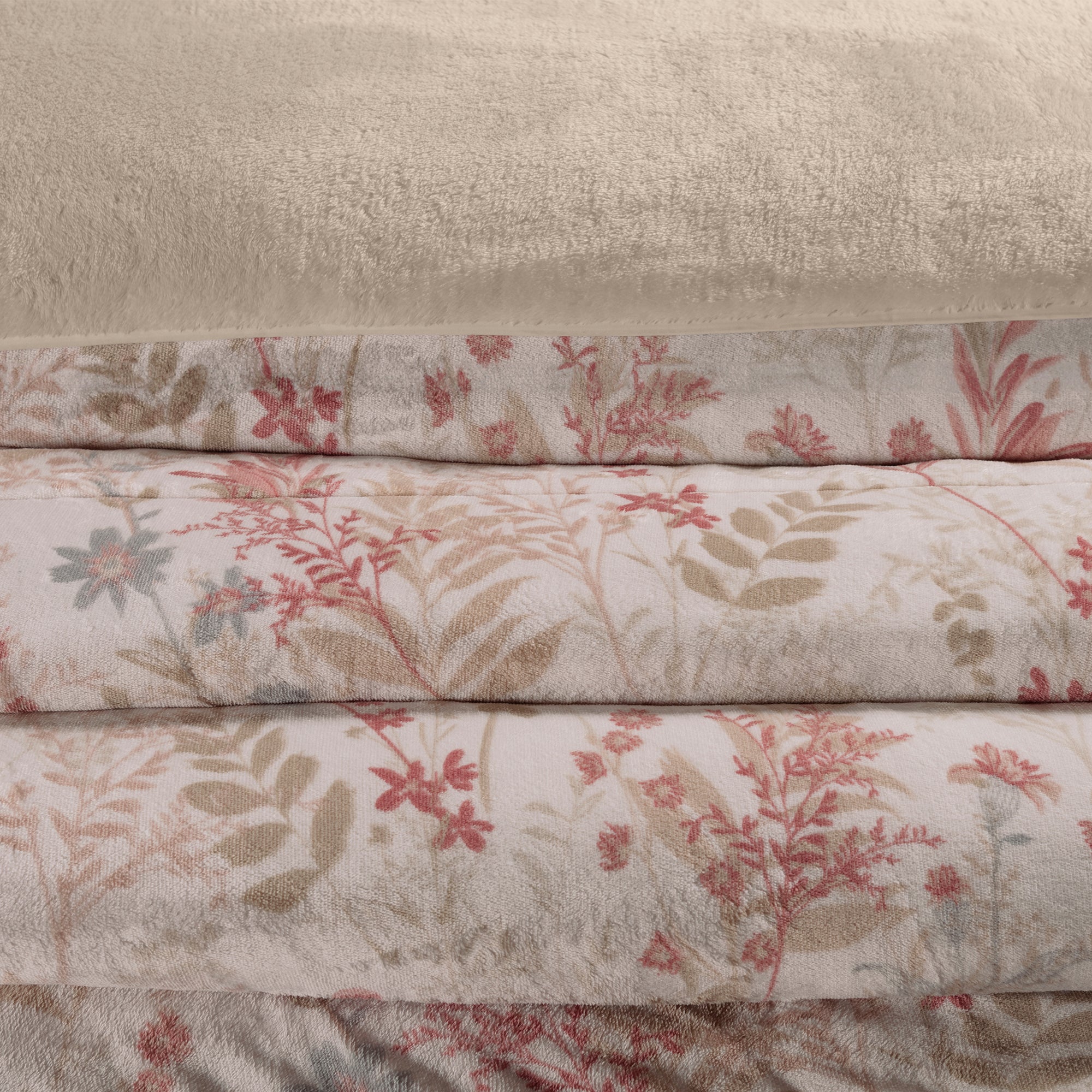 Cobertor invernal con primera vista de textura suave Beauty Soft y su segunda vista de borrega premium.
