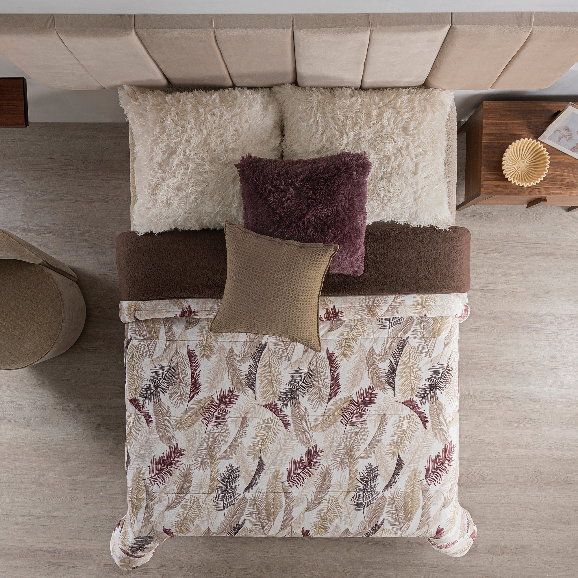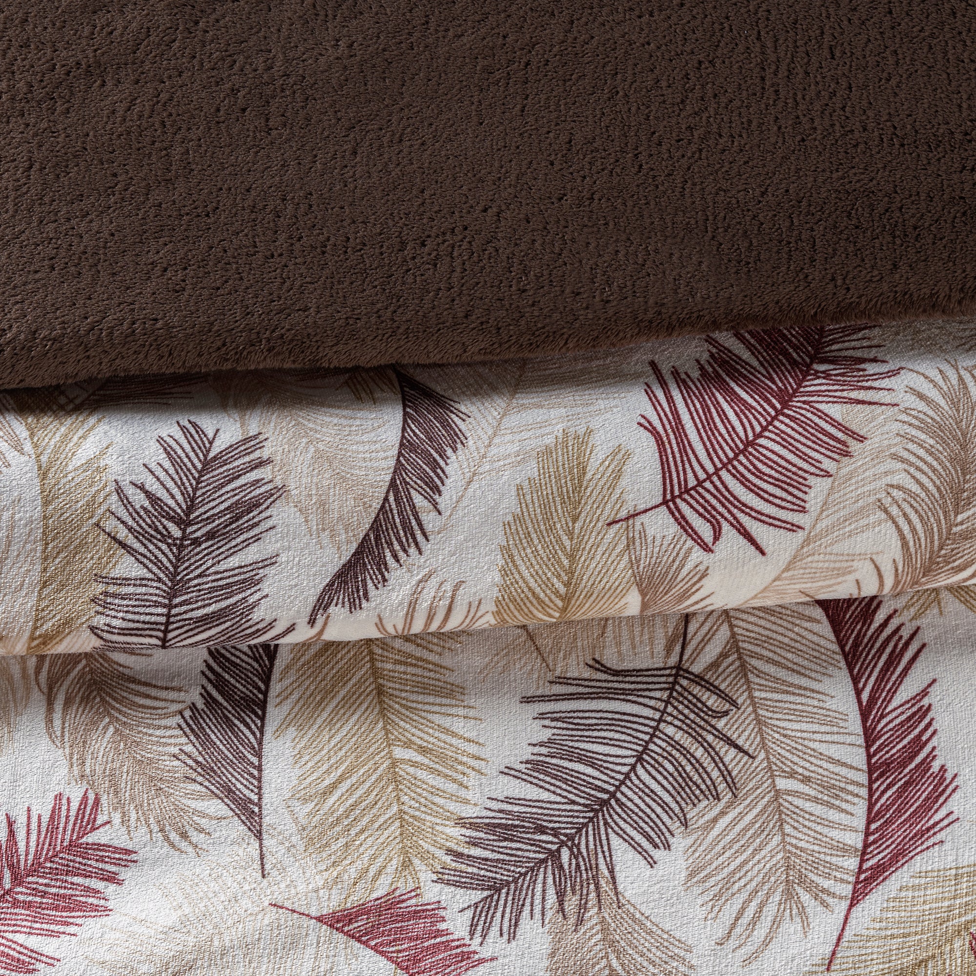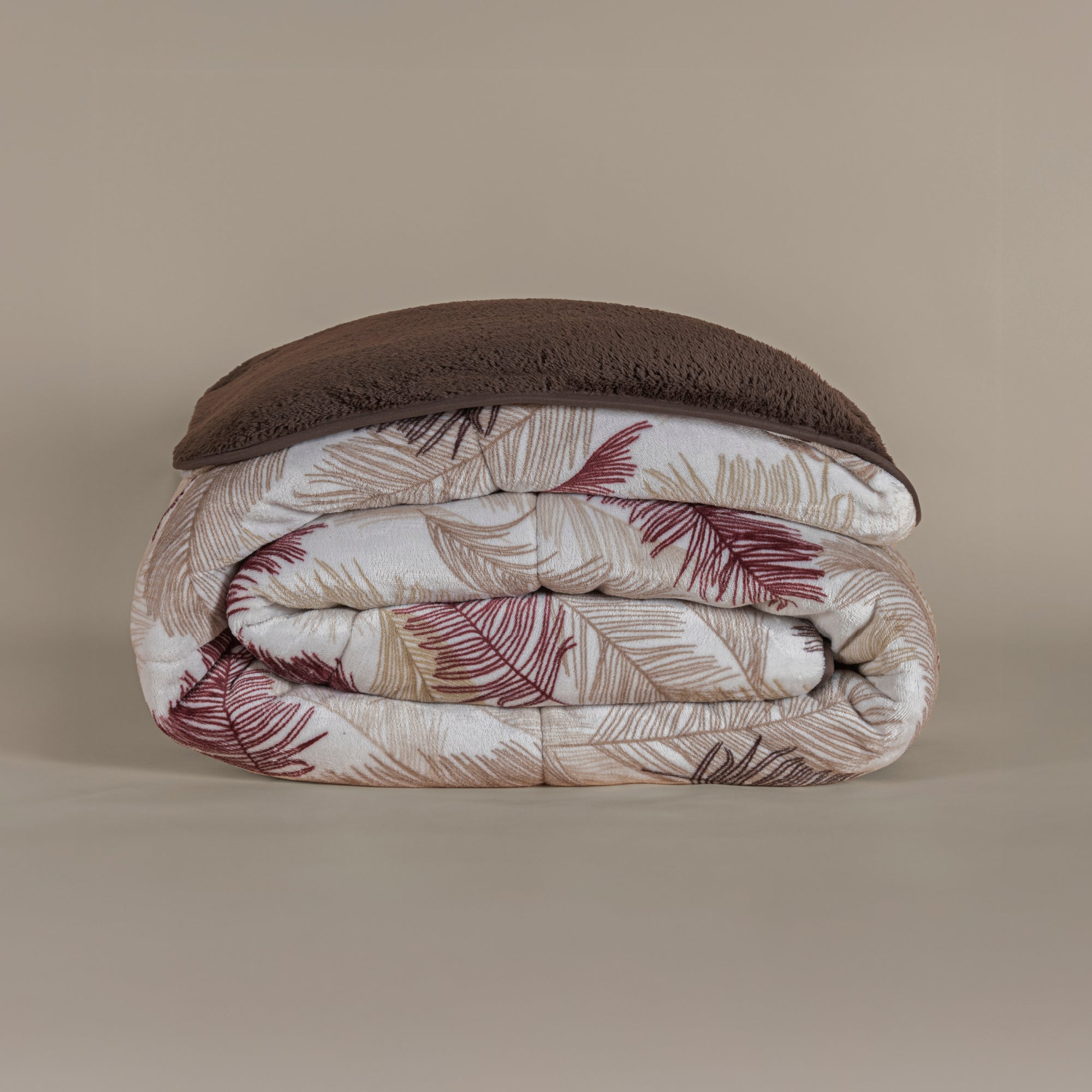 Cobertor invernal con primera vista de textura suave Beauty Soft y su segunda vista de borrega premium.