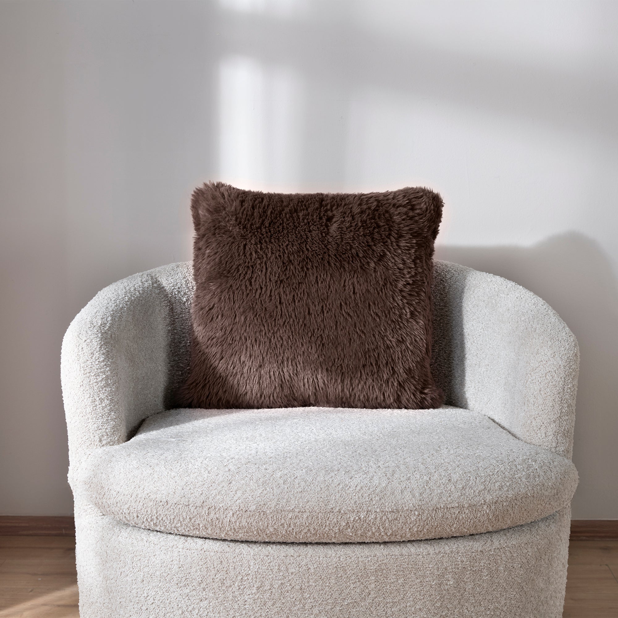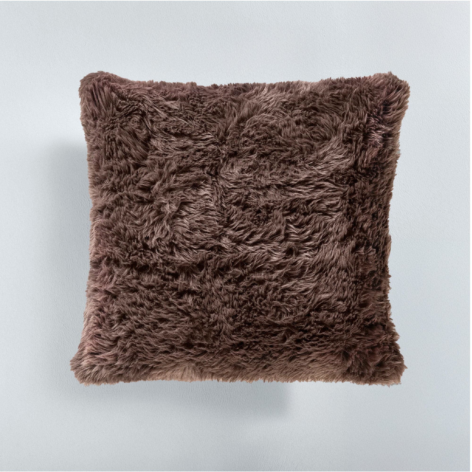 Agrega un toque invernal a tus espacios con el cojín Everest Espresso, ideal por su pelo largo ultra suave