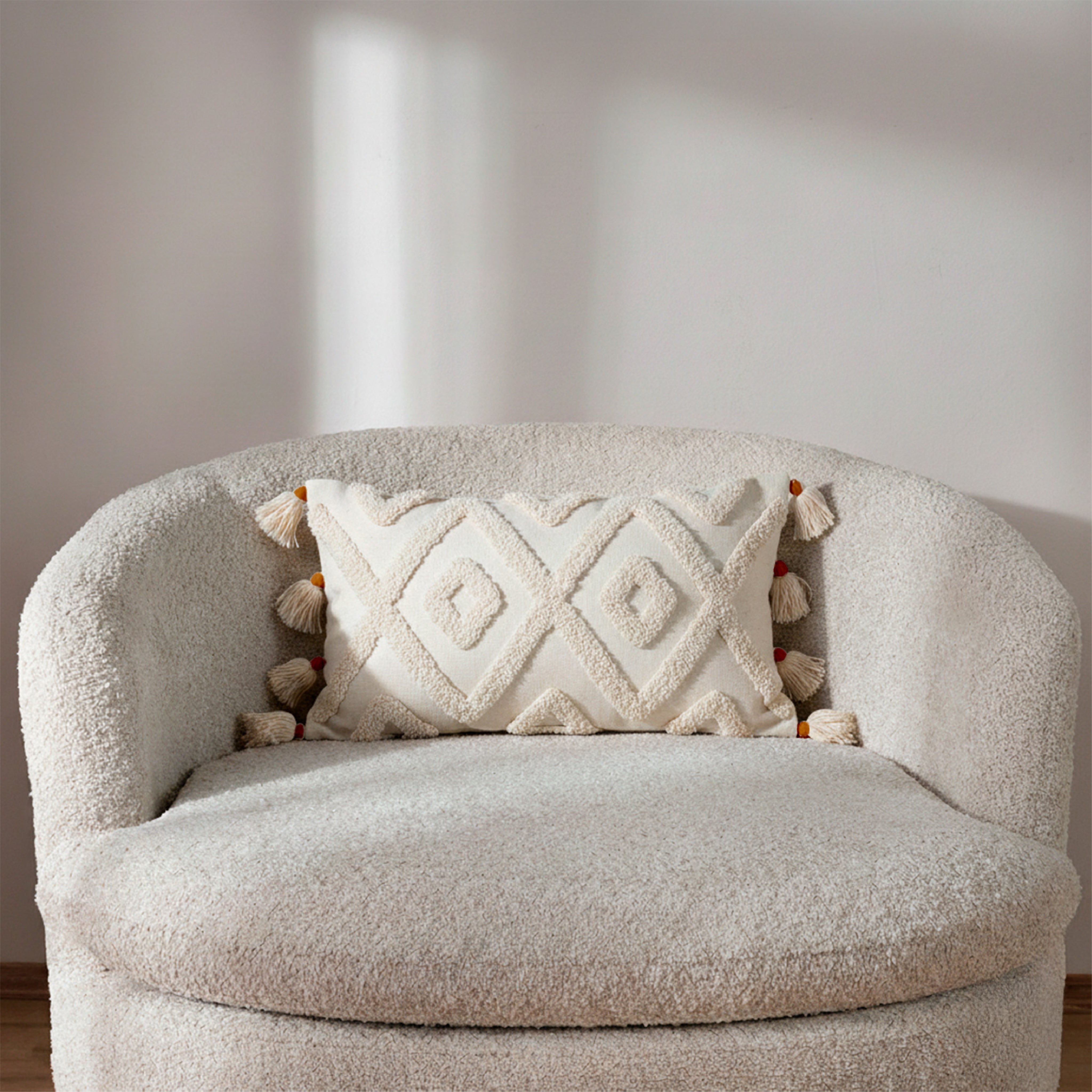 Funda de cojín rectangular Mumbai beige, una de nuestras líneas exclusivas por sus materiales y tejidos premium, Añade estilo y sofisticación a tus espacios, y la podrás combinar con más diseños para crear un conjunto completo y coordinado.